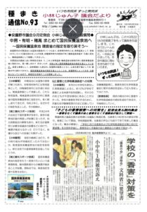 種まき通信第93号を発行しました。小林じゅん子の議会だよりとしては、これが最終号となります。